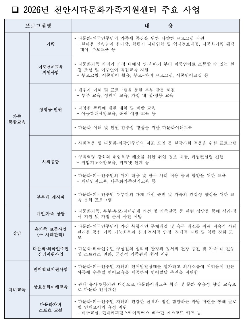 12. 다문화가족 교류소통공간 설치 [여성가족부·천안시]