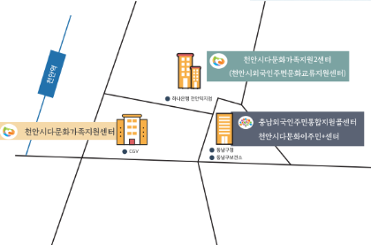 주소) 충청남도 천안시 동남구 은행길 15, 3층 천안시다문화가족지원센터
