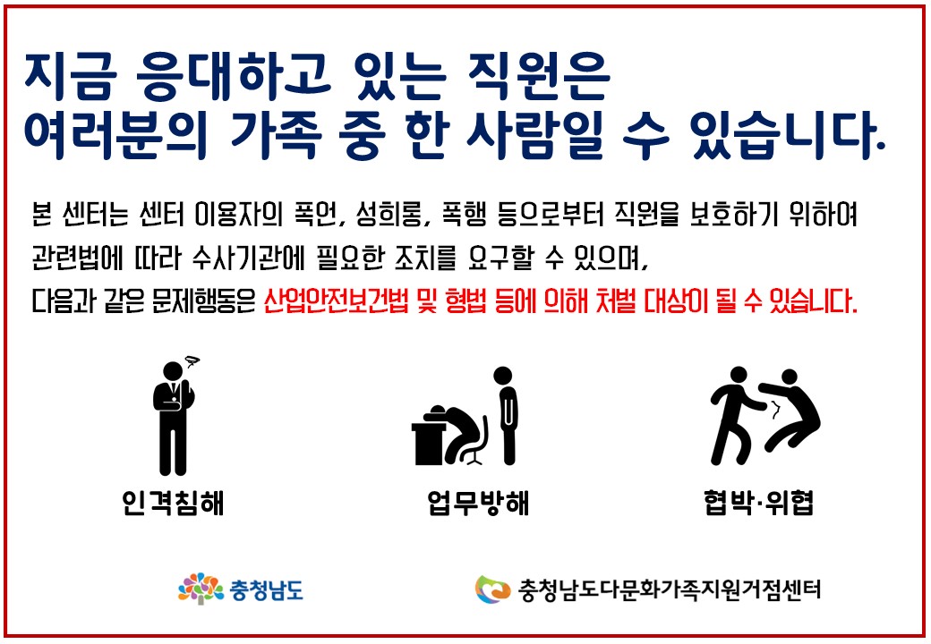 산업안전근로법에 따른 고객응대근로자보호법을 6개 국어로 안내하오니 참고하시기 바랍니다.